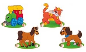 Lesen Sie mehr Details über 4 Stück GARDEROBE Set KINDER jeweils 2 KLEIDERHAKEN Tiere Hund Pferd Eisenbahn Lok HOLZ Holzgarderobe Kinderzimmer Deko Dekoration bei Amazon