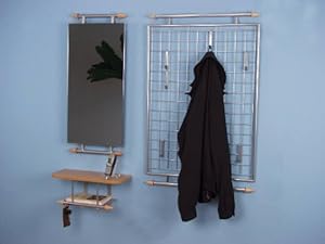 Praktisches Garderobet-Set mit viel Funktion zum Sparpreis. Bestehend aus Wandspiegel, Wandkonsole und Wandgarderobe inklusive 6 Metallhaken. Gestell jeweils aus Stahlrohr, alufarben pulverbeschichtet, kombiniert mit Massivholzspitzen, buchefarben. Ablage mit MDF-Ablageboden, buchefarben. Ideal auch für kleine Räume. Alle Artikel auch einzeln bestellbar. Sie sparen gegenüber Einzelkauf ? 10,35.Array